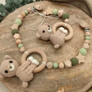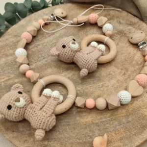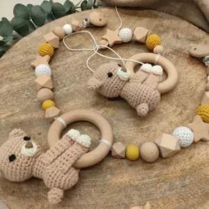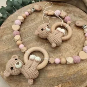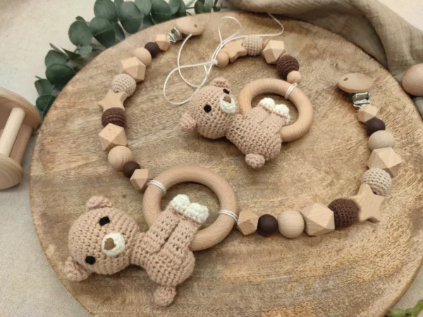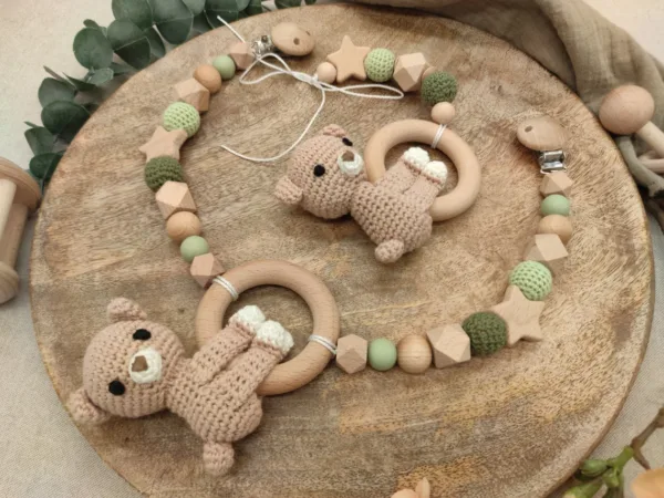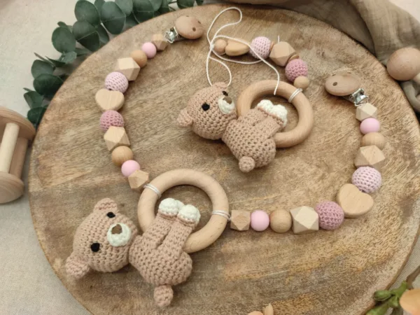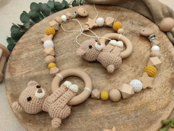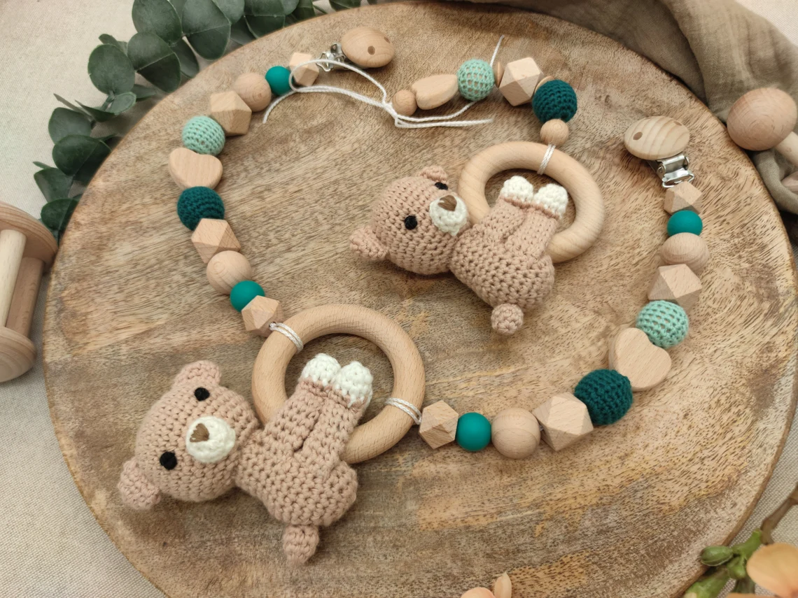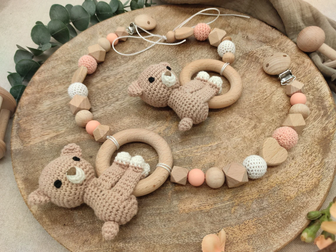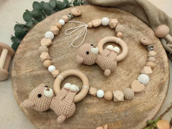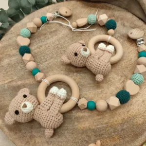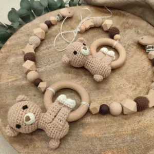 Geschenkbox „Bär“ | Kinderwagenkette | Babyschalen Anhänger | gehäkelt