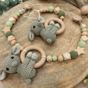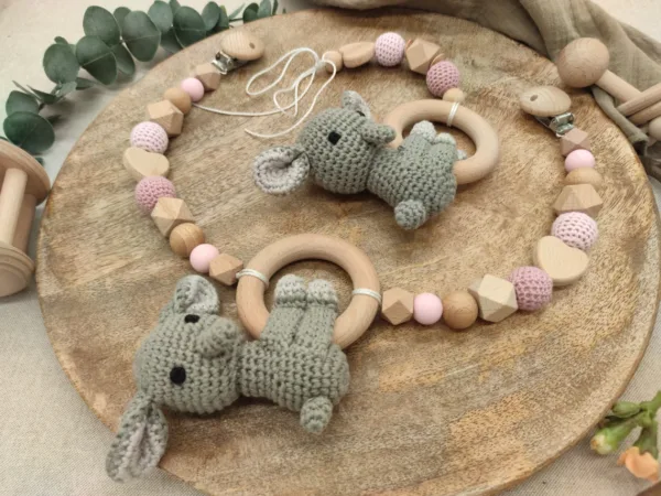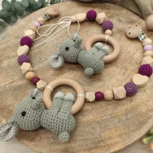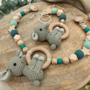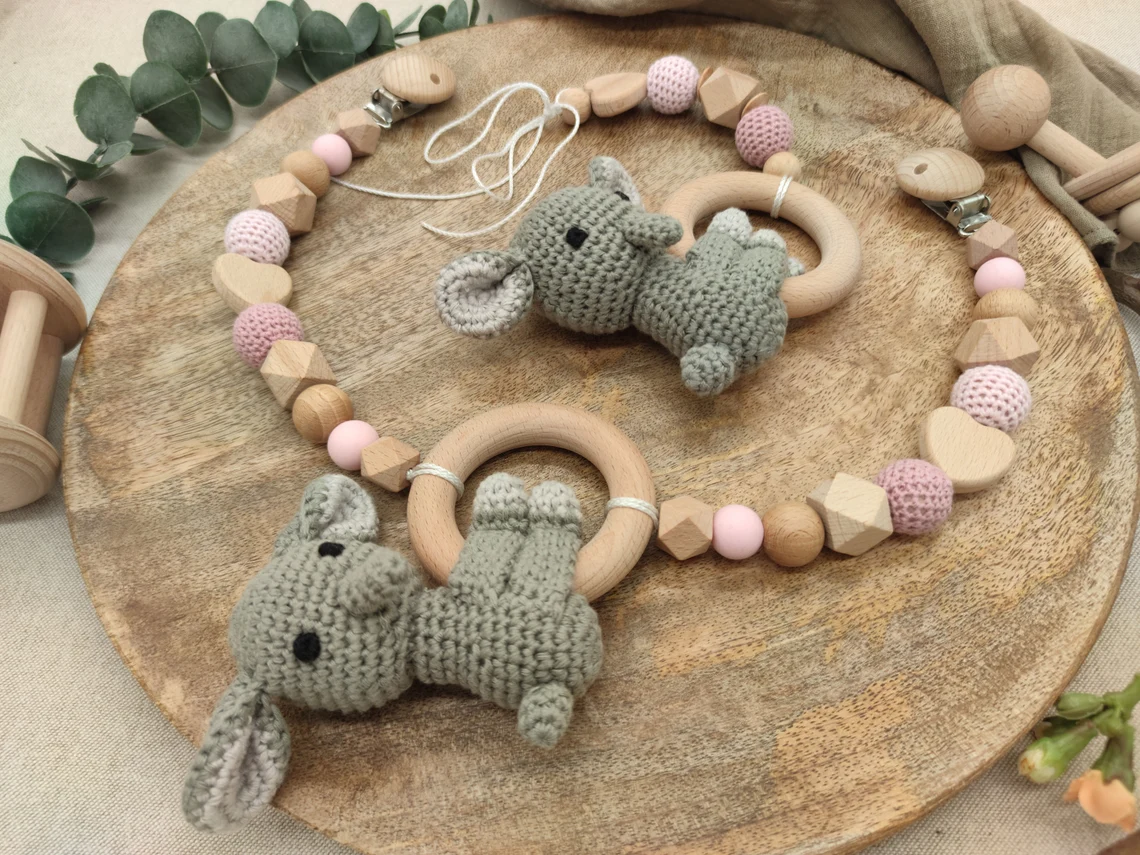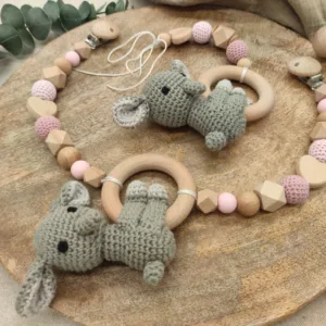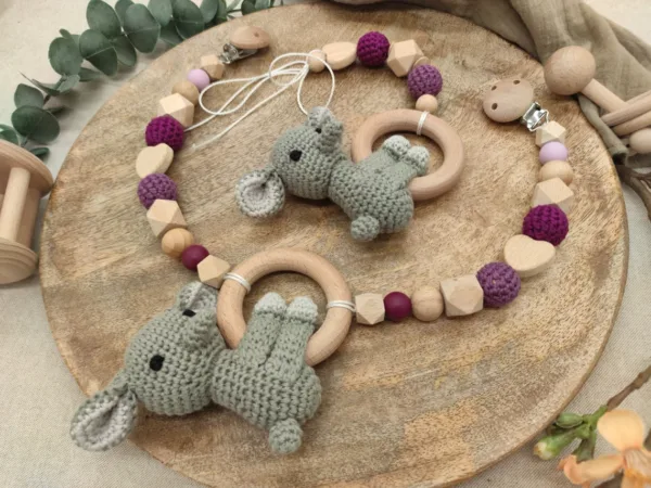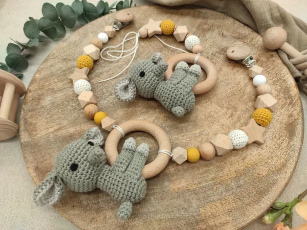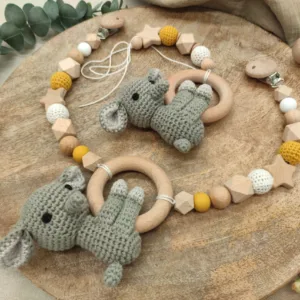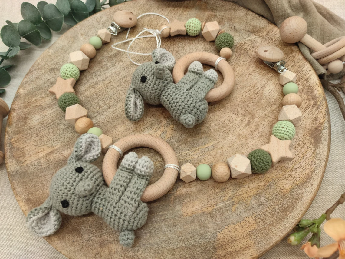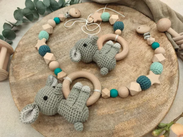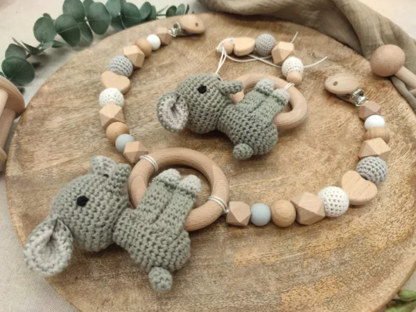 Geschenkbox „Elefant“ | Kinderwagenkette | Babyschalen Anhänger | gehäkelt