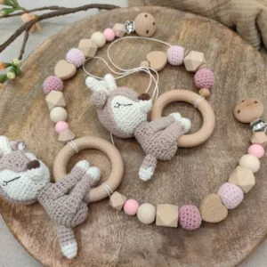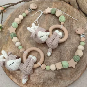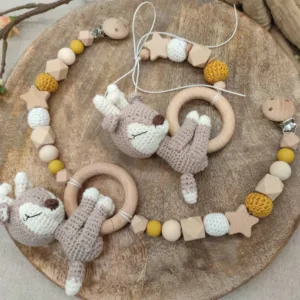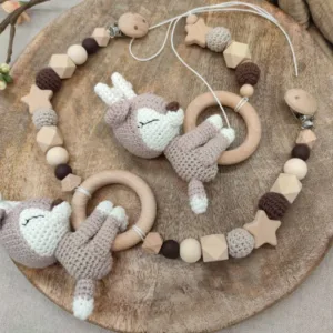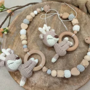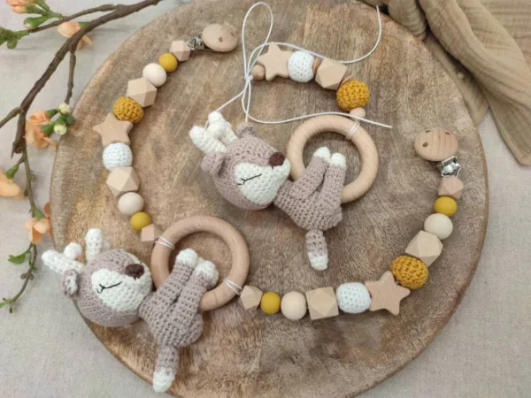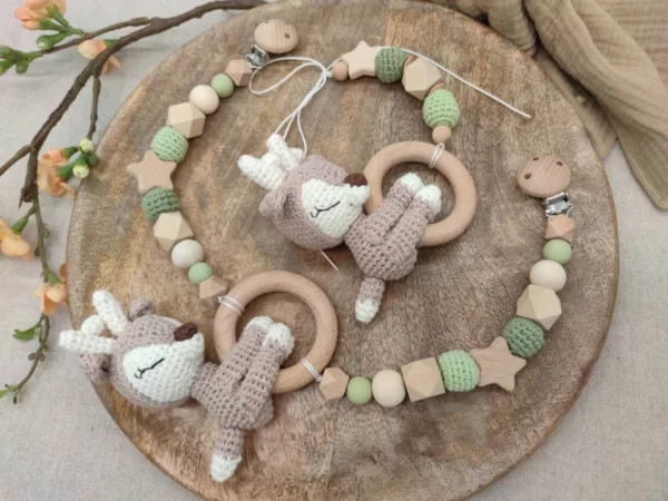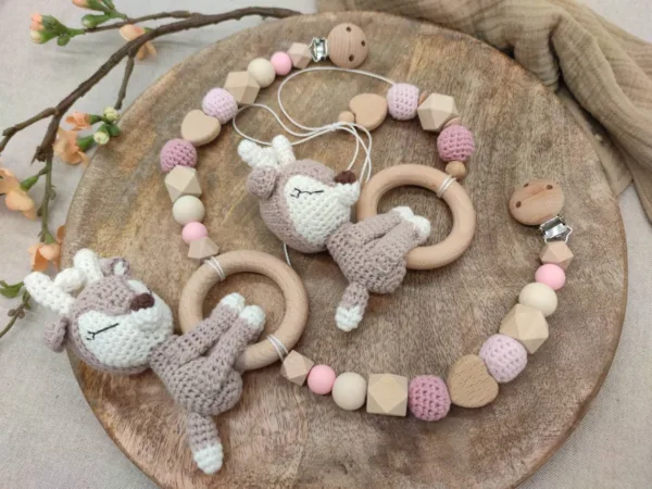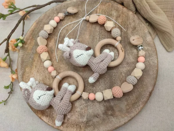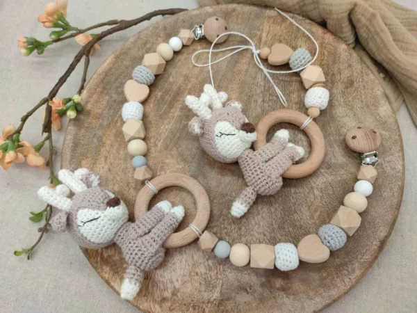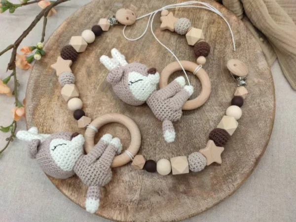 Geschenkbox „Reh“ | Kinderwagenkette | Babyschalen Anhänger | gehäkelt
