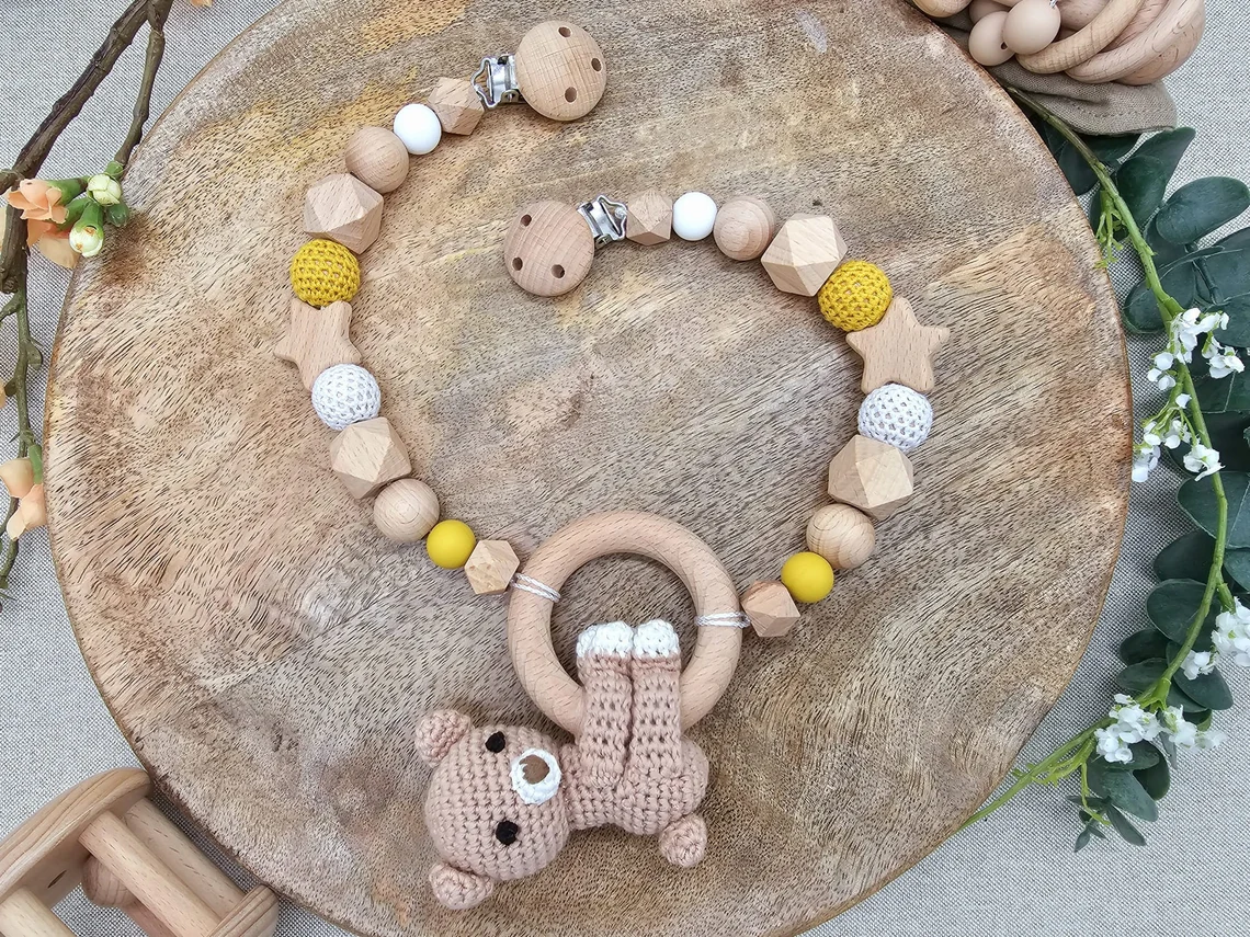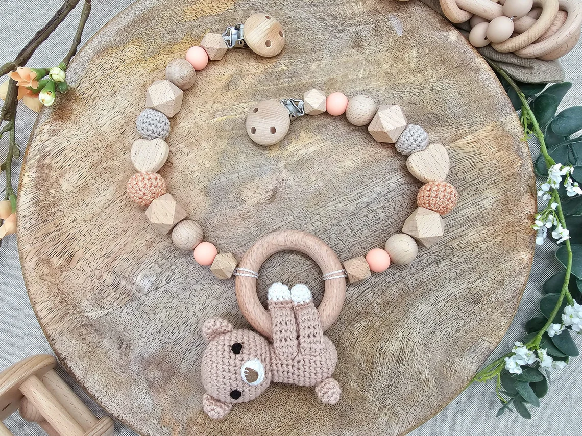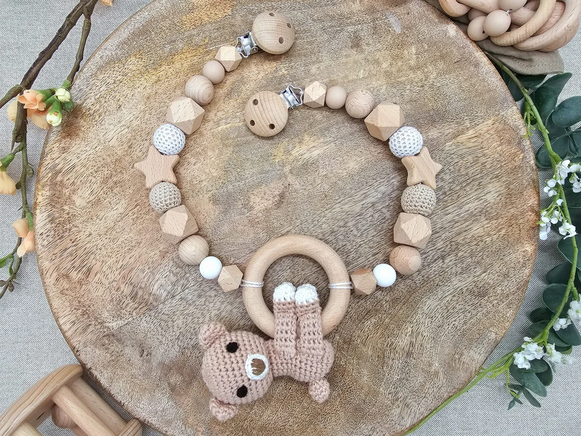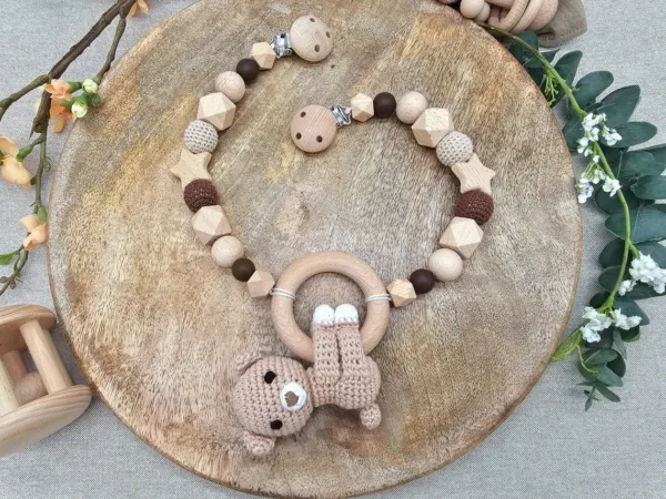 Im Kopf des Bären ist eine Rassel eingearbeitet.