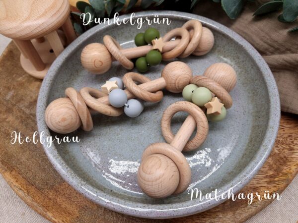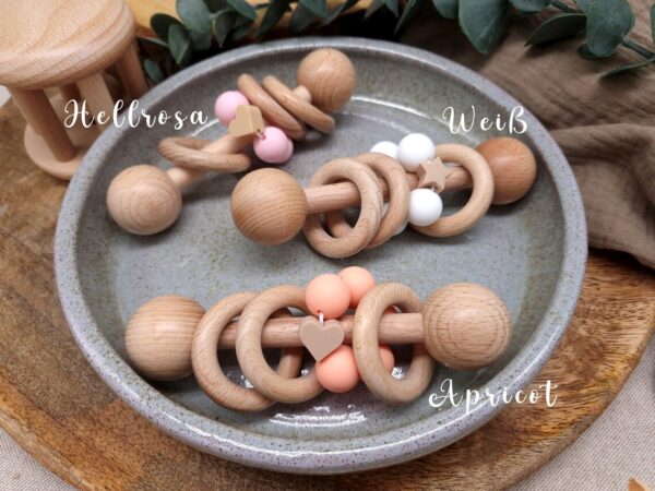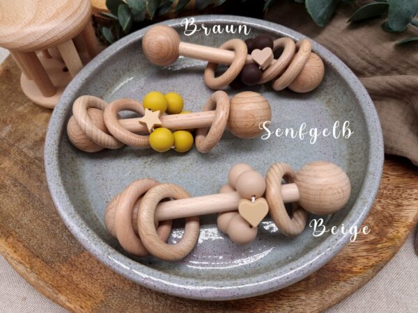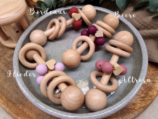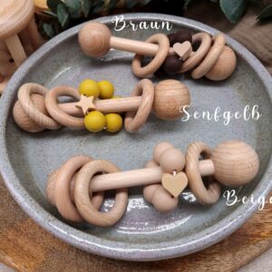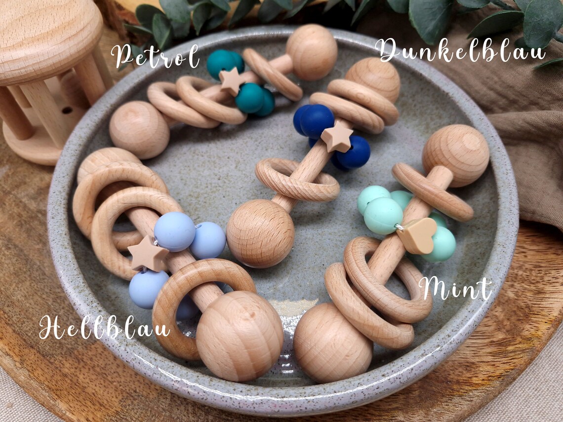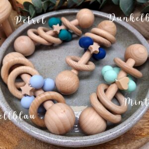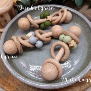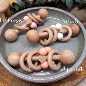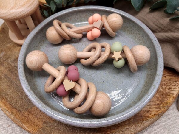 Unsere Stabrasseln laden dein Baby zum Spielen und Interagieren ein.