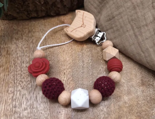 Wunderschöne Schnullerkette mit Blumenperle als treuer Helfer und Begleiter deines Babys.