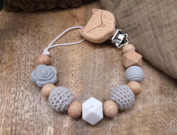 Wunderschöne Schnullerkette mit Blumenperle als treuer Helfer und Begleiter deines Babys.