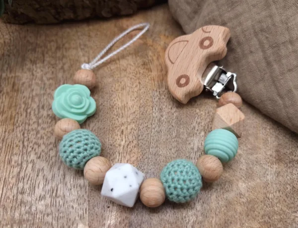 Schnullerkette „Blume“ in Mint