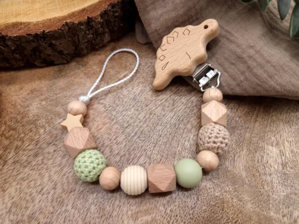 Wunderschöne Schnullerkette aus Holz-, Silikon- und Häkelperlen