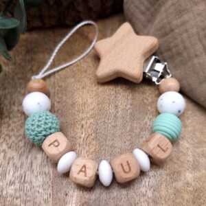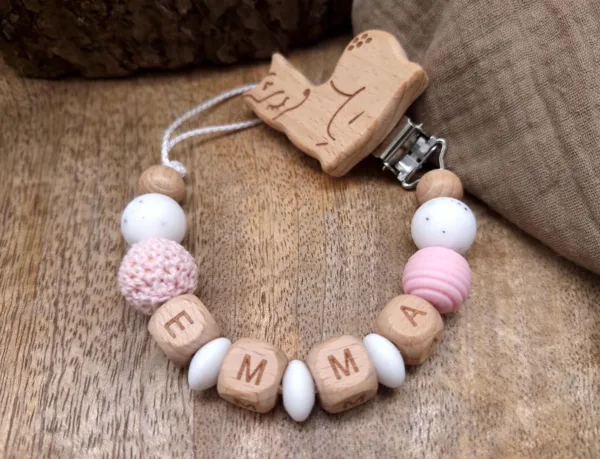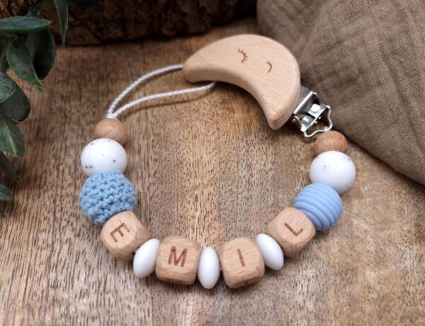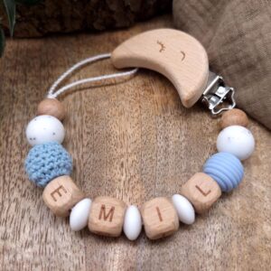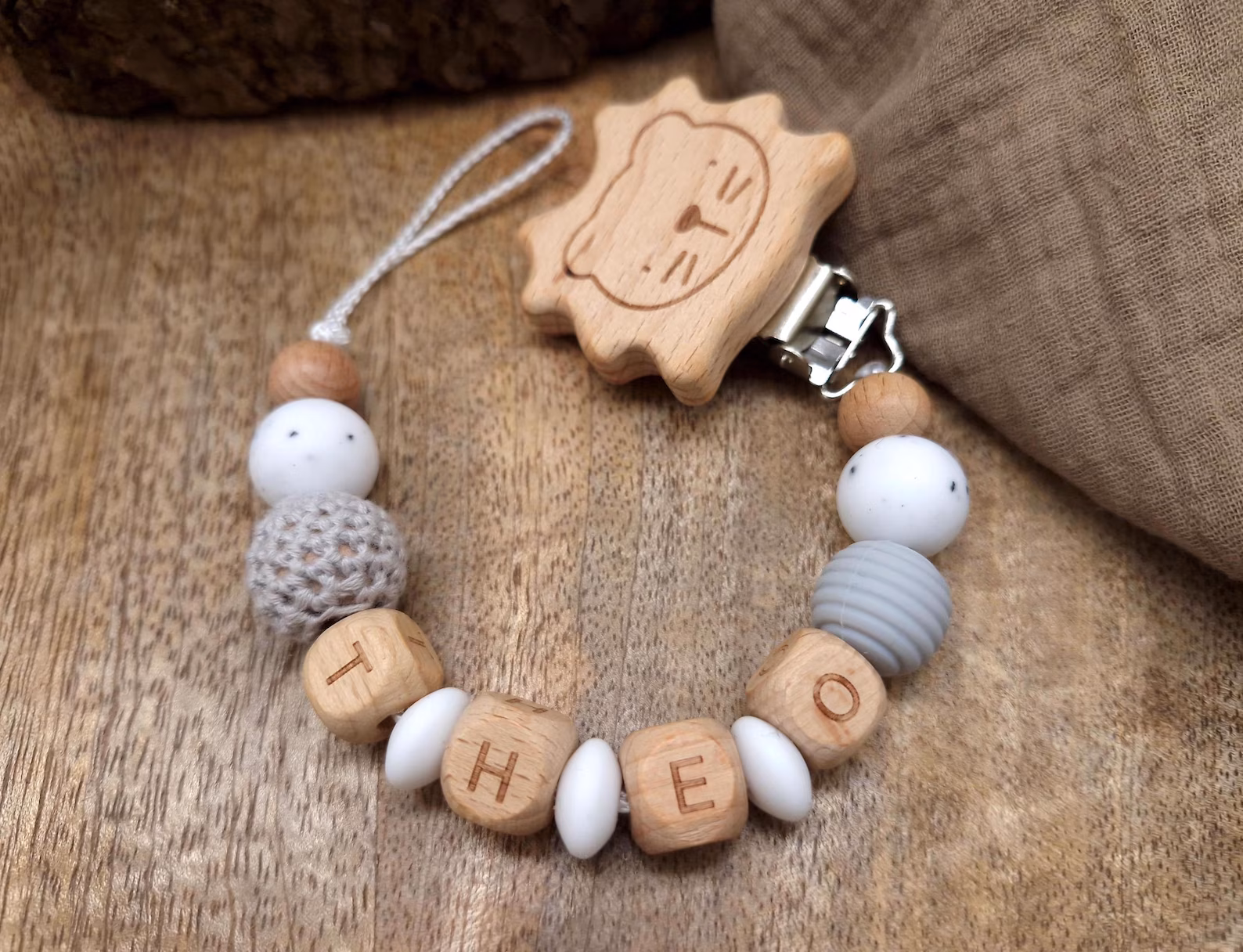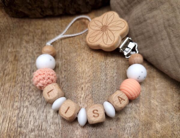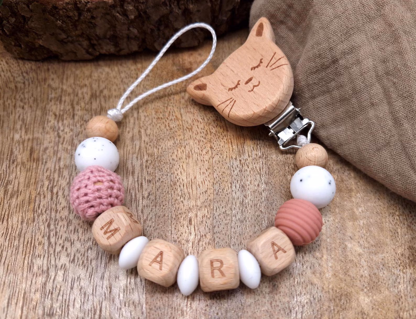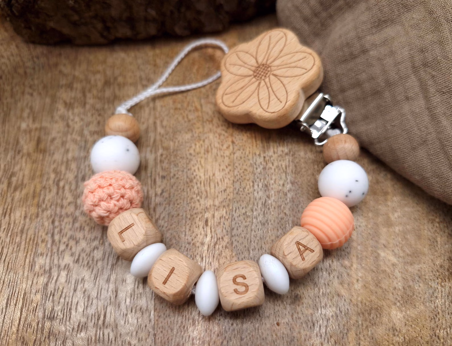 Wunderschöne Schnullerkette in schlichtem, eleganten Design als treuer Helfer und Begleiter deines Babys.