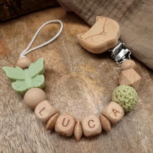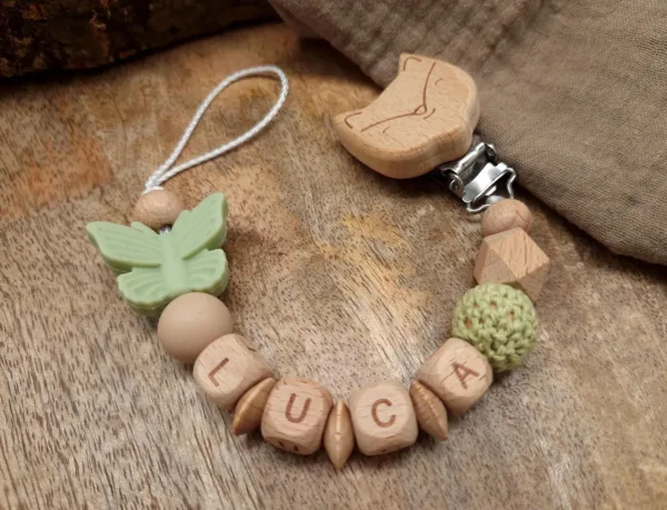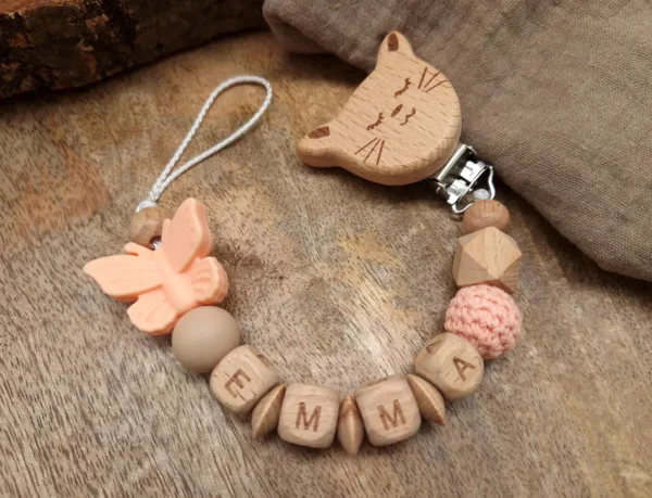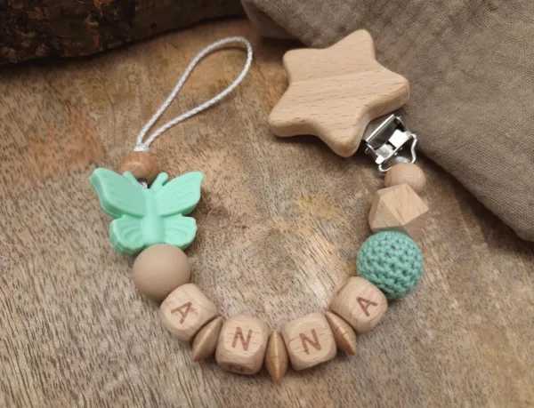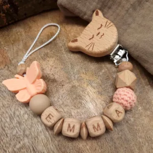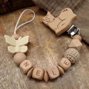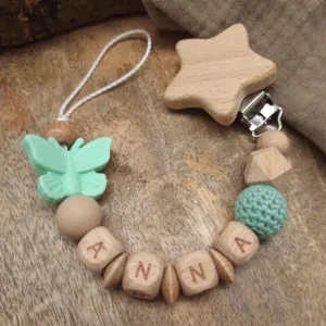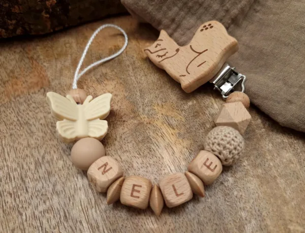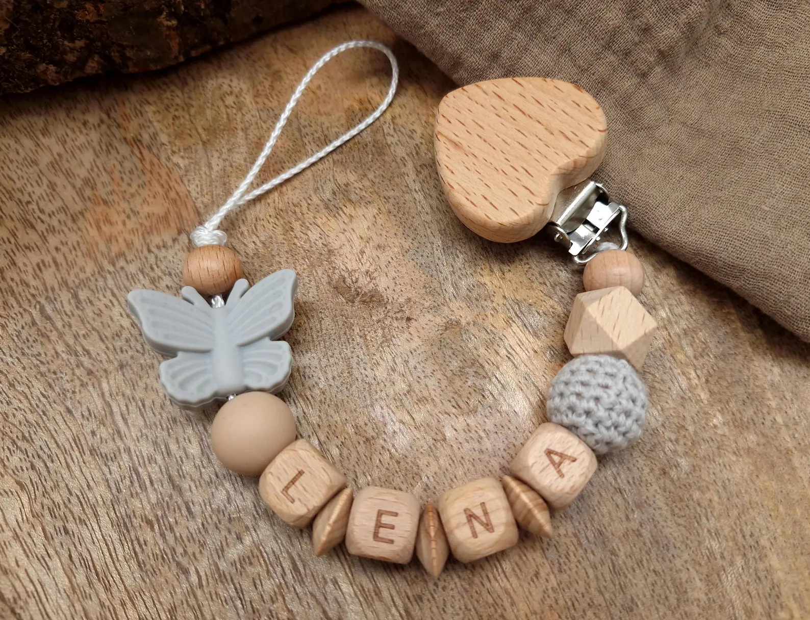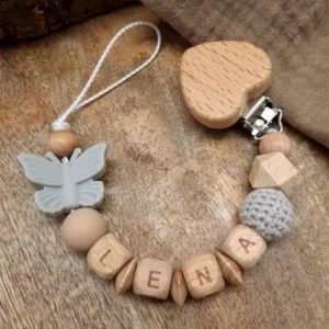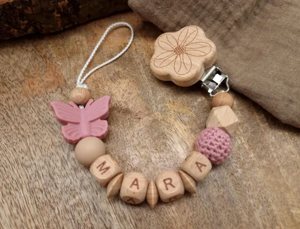 Schnullerkette mit Namen „Schmetterling“ | Viele vers. Farben
