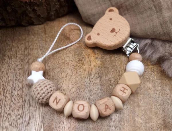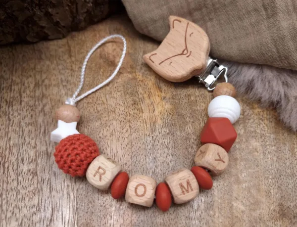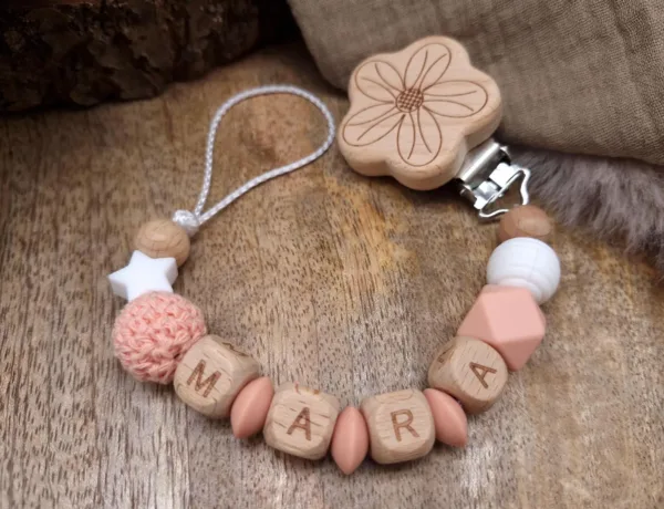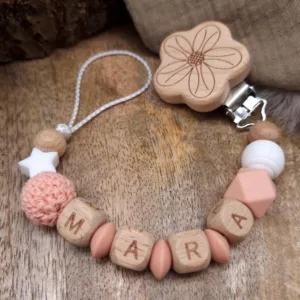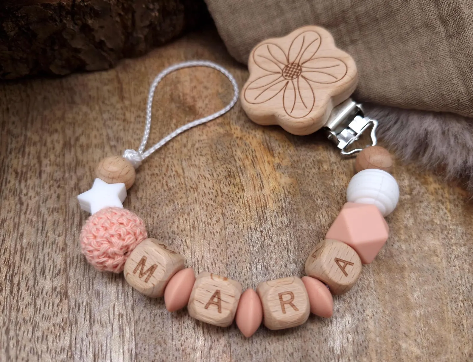 Wunderschöne Schnullerkette in schlichem Design als treuer Helfer und Begleiter deines Babys..