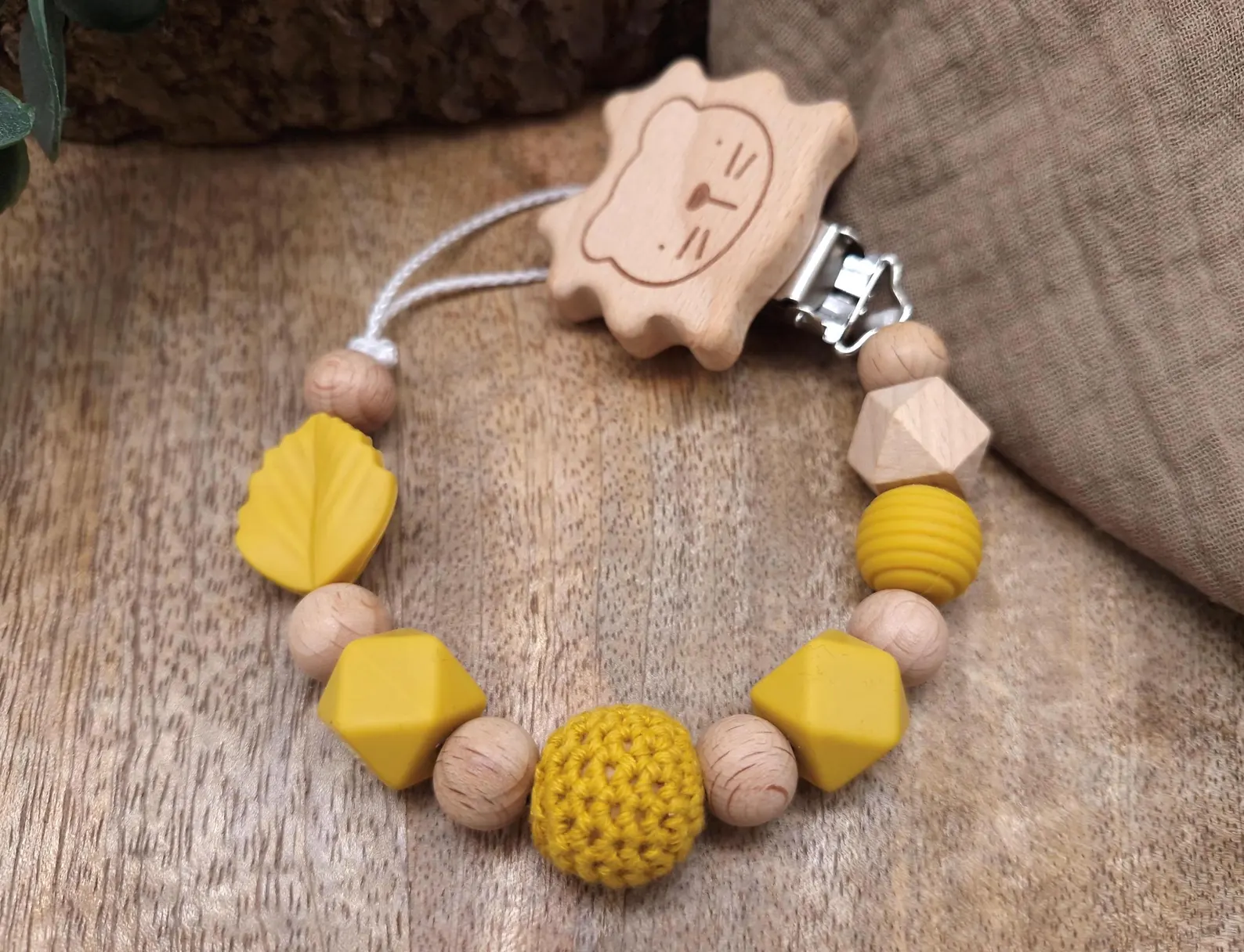 Wunderschöne Schnullerkette mit Blattperle als treuer Helfer und Begleiter deines Babys.
